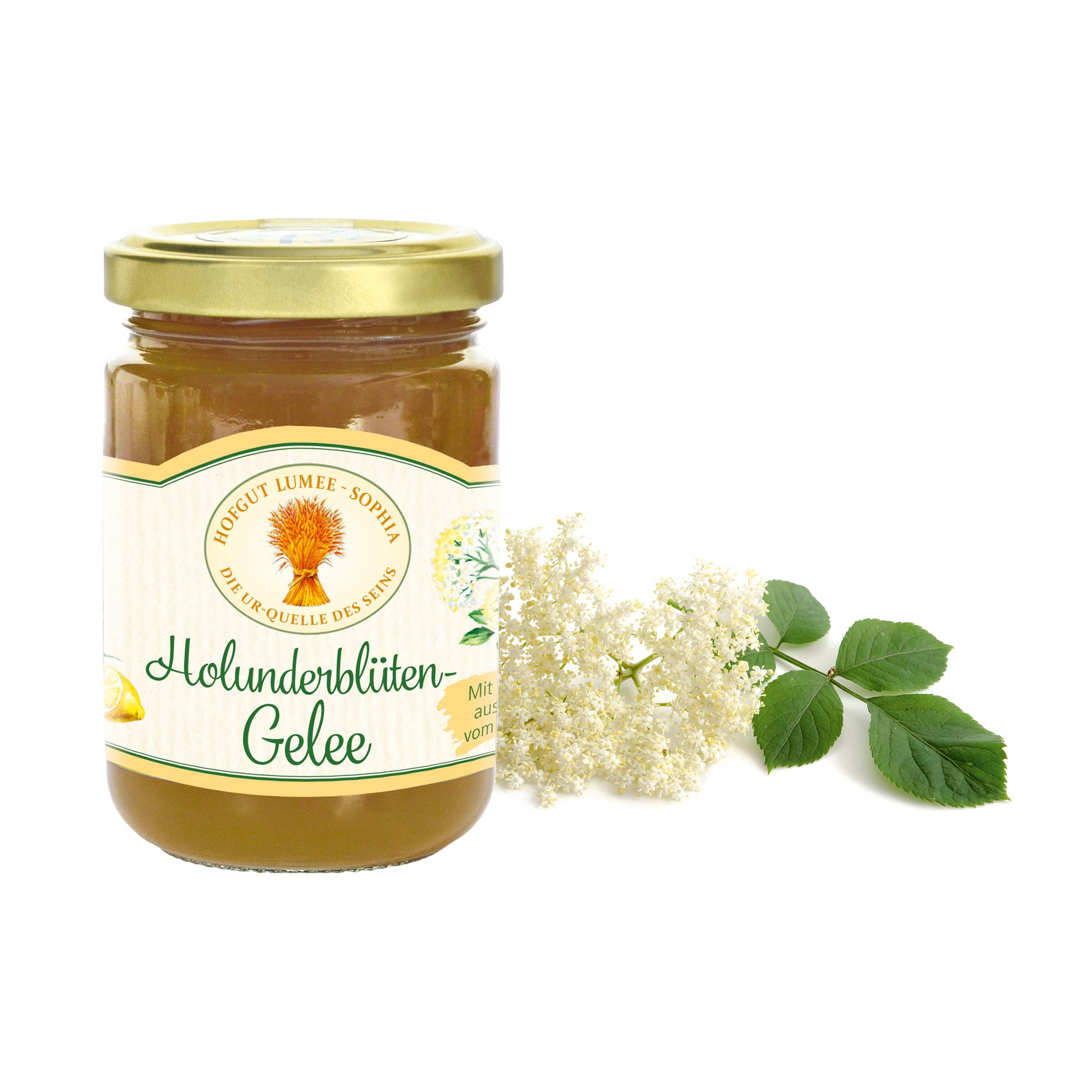 Eau, sucre de canne non raffiné*, fleurs de sureau* 6%, citrons* 2%, gélifiant: pectine de pomme, agar-agar*