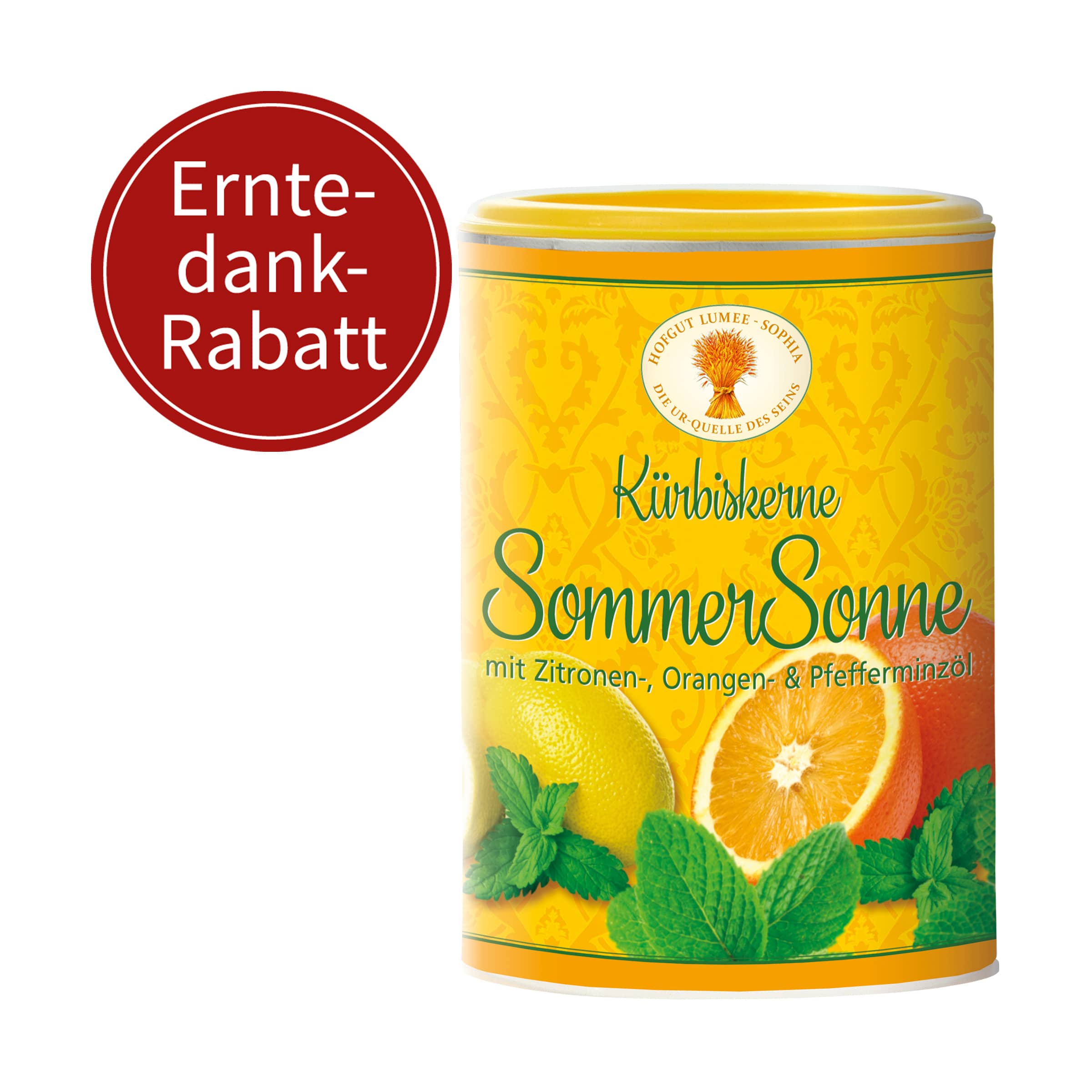 Graines de courge* 71%, sucre de canne* brut, huiles naturelles* en proportions variables 0,3% (Huile de citron*, huile d'orange*, huile de menthe*)