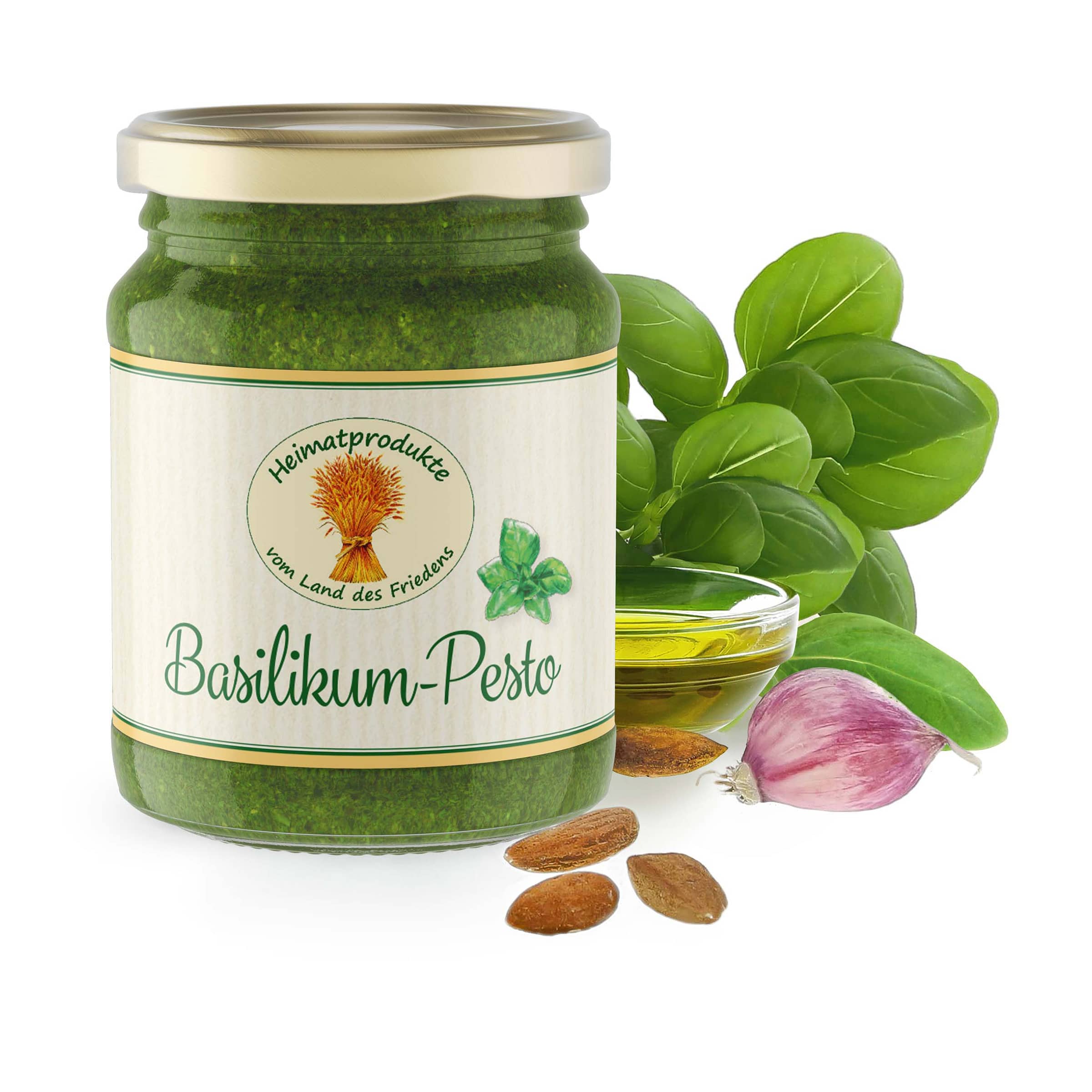 Basilic* 38%, huile de tournesol*, huile d'olive* extra vierge, amandes*, sel de roche, ail*, concentré de jus de citron*